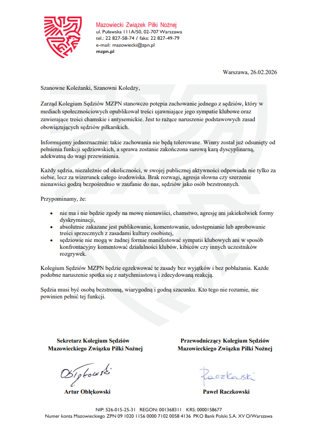 Prosimy o zapoznanie się z komunikatem Kolegium Sędziów w sprawie zachowania w mediach społecznościowych.